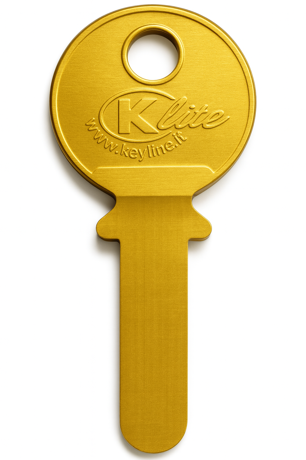 Die Schlüssel der Serie Klite sind aus einer Speziallegierung aus Aluminium und Titan gefertigt und verfügen über einen Kopf, der sich perfekt zur Personalisierung eignet. Die Materialeigenschaften machen diesen Schlüssel zu einem