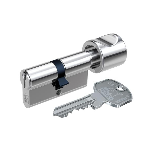 AS - Cylindre à bouton profil K30/30 mm, VS, 3 clés cylindriques, 5 goupilles, protection anti-perçage, laiton nickelé mat, testé selon DIN 18252:2006-12