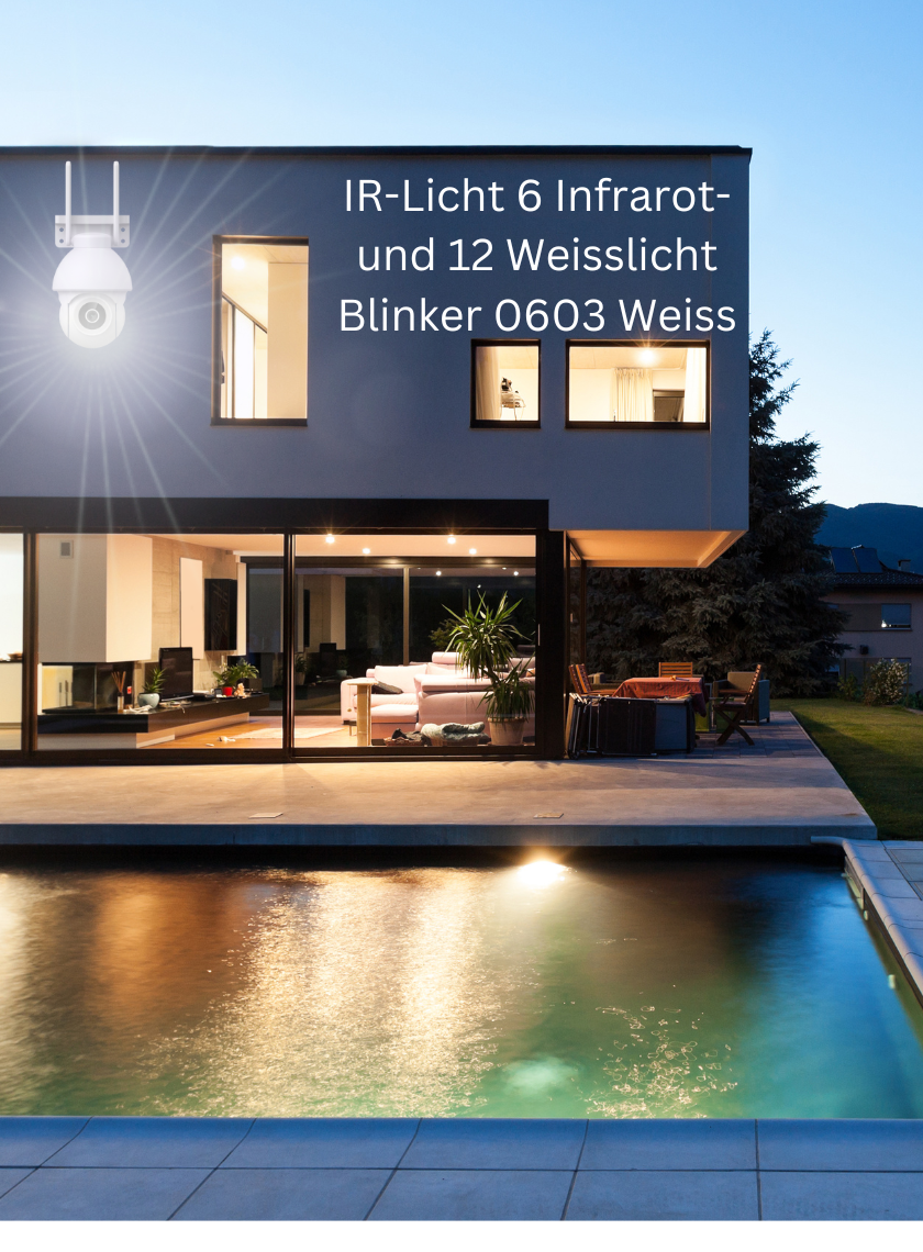 1/3 Zoll CMOS-Sensor mit 3 Megapixeln für klare und detailreiche Bilder Auflösung von 2304 × 1296 Pixeln (Full HD). Feste 4-mm-HD-Speziallinse für eine stabile und scharfe Bilddarstellung. Automatischer IR-CUT-Filter für zuverlässige Tag- und Nachtüberwachung .6 Infrarot-LEDs (850 mm) und 12 weisse LEDs für optimale Ausleuchtung bei Dunkelheit. Nachtsichtreichweite von ca. 8–10 Metern. Digitale Wide-Dynamic-Range-Funktion (WDR) mit 3D-Rauschunterdrückung. H.265-Videokomprimierung für hohe Bildqualität bei geringer Datenrate. Mobile Fernüberwachung per Smartphone (iOS und Android) Unterstützung von Cloud-Diensten. Kompatibel mit Smart-Home-Systemen wie Amazon Alexa und Google Assistant